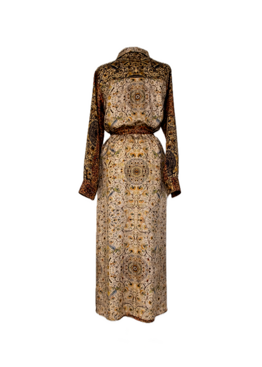 Nous utilisons de la soie naturelle raffinée de la plus haute qualité, connue pour son éclat unique et son toucher doux sur la peau. Il est léger et respirant, ce qui le rend idéal pour des vêtements élégants et des accessoires de haute qualité. La soie régule la température du corps, vous gardant au frais en été et au chaud en hiver. C'est le tissu parfait pour ceux qui veulent une touche d'élégance et de confort. Également disponible avec des imprimés à motifs.