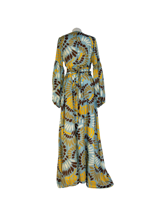 Robe à manches longues en soie imprimée