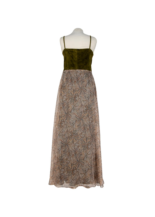 Robe longue en daim et soie imprimée