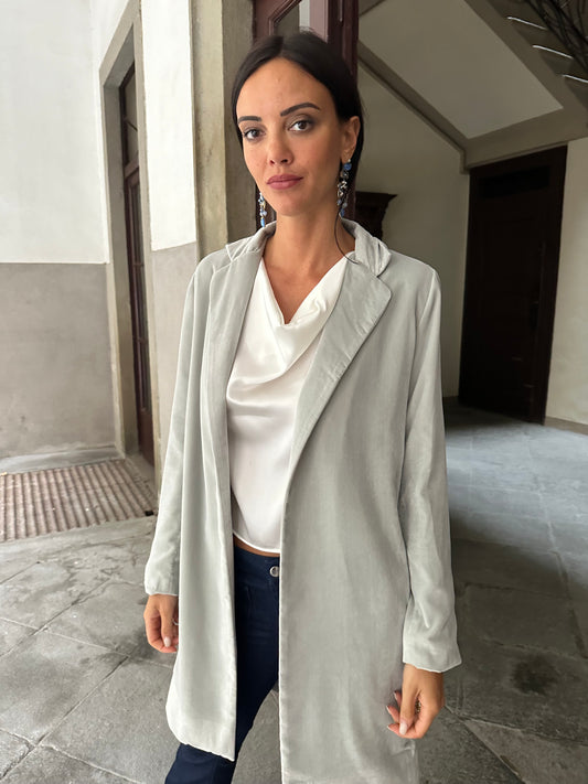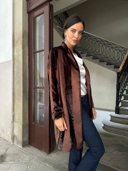 Nous utilisons de la soie naturelle raffinée de la plus haute qualité, connue pour son éclat unique et son toucher doux sur la peau. Il est léger et respirant, ce qui le rend idéal pour des vêtements élégants et des accessoires de haute qualité. La soie régule la température du corps, vous gardant au frais en été et au chaud en hiver. C'est le tissu parfait pour ceux qui veulent une touche d'élégance et de confort. Également disponible avec des imprimés à motifs.